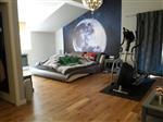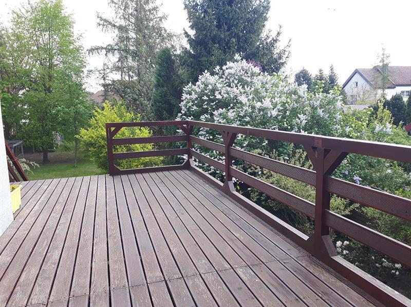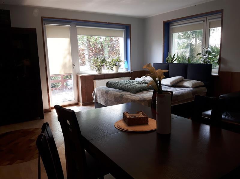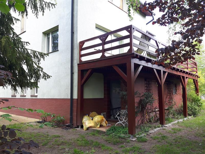 Nieruchomość gruntowa zabudowana budynkiem mieszkalnym z ogrodem, położona na działkach ewidencyjnych nr 384/9 i 387/13, płaska konfiguracja terenu, ogrodzenie od strony nieruchomości sąsiednich płotem z paneli drewnianych, od frontu z siatki pomiędzy słupkami stalowymi, brama wjazdowa i furtka stalowe. Przed budynkiem utwardzenie z płytek betonowych. Na terenie działek znajdują się nasadzenia roślinne – starodrzew, drzewa, krzewy, ozdobne i trawa. Teren wyposażony w sieć elektryczną, wodociągową, kanalizacji sanitarnej, gazową i telefoniczną. Działka 384/9 o pow. 700 m2 zabudowana domem mieszkalnym jednorodzinnym wolnostojącym, regularny kształt zbliżony do prostokąta. Działka nr 387/13 o pow. 856 m2 jest niezabudowana i użytkowana jako ogród, kształt prostokąta i dostęp do drogi publicznej od strony ul. Świerkowej. Obie działki stanowią jedną całość gospodarczą. Dojazd drogą boczną o nawierzchni asfaltowej dochodzącą do drogi głównej ul. Modrzewiowej. Opis budynku - wolnostojący, wybudowany w technologii tradycyjnej, murowany, dwie kondygnacje naziemne (w tym poddasze użytkowe) oraz całkowite podpiwniczenie znacznie wyniesione poza poziom terenu. Taras zewnętrzny wyłożony panelami, balustrada oraz schody z tarasu prowadzące do ogrodu drewniane. Zestawienie pomieszczeń w m2: Parter: aneks kuchenny 8,58; salon 34,41; pokój I 13,87; pokój II 15,28; przedpokój I 13,38; przedpokój II 7,15; łazienka 5,46 - razem 98,13. Poddasze : sypialnia z garderobą 39,00; pokój I 12,30; pokój II 16,70; łazienka 14,00; spiżarka 5,60; klatka schodowa 3,60 - razem 91,20. Razem powierzchnia użytkowa 189,33. Piwnice: pralnia 5,62; garaż 29,57; kotłownia 7,37; korytarz+schody 6,61; pomieszczenie gospodarcze 53,60 - razem 102,77.Razem powierzchnia całkowita 292,10. Wykończenie pomieszczeń staranne, pomieszczenia w budynku funkcjonalne, użyte materiały dobrej jakości. W budynku znajdują się dwie łazienki w dobrym standardzie, łazienka na poddaszu dodatkowo wyposażona stanowiąc salon kąpielowy, część pomieszczeń w piwnicy wykończona i przeznaczona na pralnię oraz pomieszczenia magazynowe. Przeznaczenie w MPZP - MN - teren zabudowy mieszkaniowej jednorodzinnej oraz zabudowy zagrodowej oraz niewielka część na poszerzenie drogi dojazdowej KD - teren ulic klasy "D" – dojazdowe. Zawarta umowa dzierżawy z dnia 16-04-2024r. dotycząca w/w nieruchomości nie wywołuje skutków prawnych, gdyż zgodnie z art.930§1kpc rozporządzenie nieruchomością po jej zajęciu nie ma wpływu na dalsze postępowanie(..), a zgodnie z § 4 w/w przepisu oddanie zajętej nieruchomości w użyczenie, leasing, najem lub dzierżawę jest bezskuteczne wobec nabywcy nieruchomości w egzekucji.