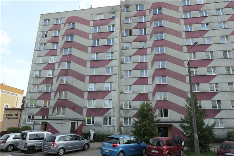 Przedmiotem licytacji jest spółdzielcze własnościowe prawo do lokalu mieszkalnego położonego pod adresem: 18-400 Łomża, Żeromskiego 4/54 wpisanego do rejestru lokali spółdzielni mieszkaniowej: Łomżyńska Spółdzielnia Mieszkaniowa w Łomży (adres spółdzielni: Al. Legionów 7B, 18-400 Łomża ), dla którego Sąd Rejonowy w Łomży VI Wydział Ksiąg Wieczystych prowadzi księgę wieczystą o numerze LM1L/00056690/0. Powierzchnia użytkowa mieszkania to 35,84 m2. Lokal składa sie z dwóch pokoi, kuchni, łazienki, przedpokoju. Lokal położony jest na drugim piętrze budynku wybudowanego ok. 1983r. Budynek posiada 9 kondygnacji mieszkalnych i jedną podziemną. W budynku znajduje się winda. Budynek wyposażony w media miejskie: kanalizacja, en. elektryczna, woda, sieć telekomunikacyjna, sieć ciepłownicza.