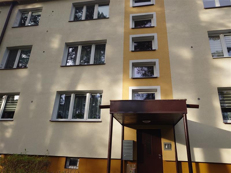 Lokal mieszkalny nr 15 przy ul. Harcerskiej 2 położony jest na I piętrze budynku wielorodzinnego (II kondygnacja). Jest to mieszkanie składające się z 3 pokoi, kuchni, łazienki, wc i przedpokoju. Mieszkania posiada balkon. Jest to mieszkanie rozkładowe. Wystawa okiem wschód-zachód. Właściciel lokalu użytkuje komórkę zlokalizowaną w piwnicy. Powierzchnia lokalu wynosi 66,80 m2. Materiały wykończeniowe: Ściany: tynk + malowanie, w kuchni częściowo boazeria, przedpokój i wc – boazeria, łazienka - płytki. Sufity: tynk + malowanie, przedpokój - boazeria. Podłogi: panele, wykładzina dywanowa, wykładzina pcv, płytki. Stolarka okienna – pcv. Stolarka drzwiowa – płycinowa w pokojach – przeszklona – starego typu.