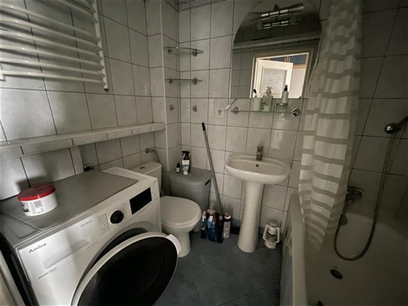 -w łazience na ścianach i posadzce położone w 2001r. płytki. Łazienka wyposażona w wannę, wc, umywalkę (stan średni)
