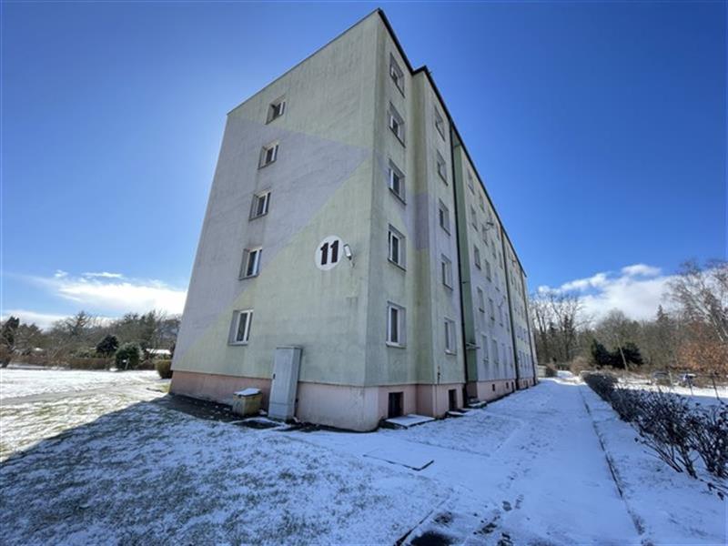 Dojazd do budynku od strony ul. Kryzana poprzez wewnętrzną drogę gminną. Teren działki od strony wjazdu przeznaczony na parking. Lokal mieszkalny nr 13 usytuowany jest na czwartym piętrze, od kilku lat niezamieszkalny o łącznej powierzchni użytkowej 46,70m2, składa się z: