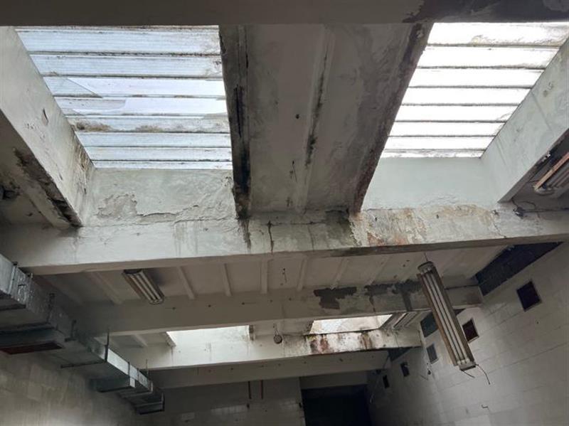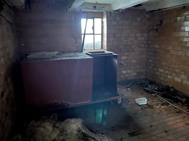 Budynek od dłuższego czasu nieużytkowany i niezabezpieczony. W budynku zdemontowano/ wyrwano większość elementów stalowych/ miedzianych. Instalacja elektryczna wyrwana ze ścian i sufitów. Okna połaciowe zdemontowane, w pozostałych oknach w większości szyby powybijane. Obiekt uległ znacznemu zniszczeniu z uwagi kradzieże, dewastacje, miejscowe pożary oraz działanie warunków atmosferycznych.
