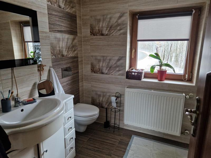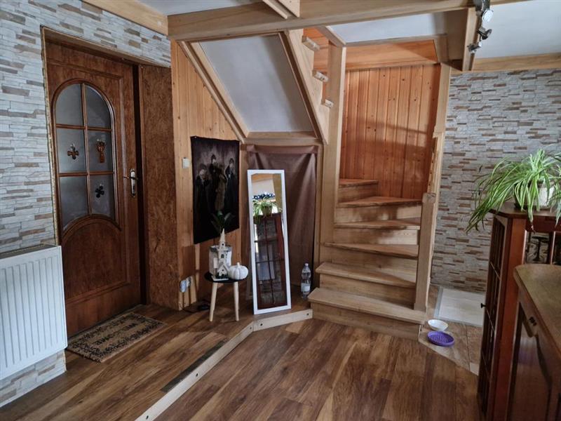 Stan techniczno-użytkowy. Działki ewid. nr 7361, 7362/1 - zabudowane. Działki zabudowane wolnostojącym budynkiem mieszkalnym jednorodzinnym o nadanym numerze 198 oraz budynkiem gospodarczym o lekkiej konstrukcji z blachy. Działki znajdują się w zasięgu energetycznej, telefonicznej oraz wodociągowej sieci uzbrojenia terenu. Dodatkowo zostały uzbrojone we własne szambo. Kompleks posiada bezpośredni dostęp do drogi publicznej o nawierzchni asfaltowej. Teren wokół zabudowań zagospodarowany zielenią ozdobną oraz infrastrukturą ogrodową. Budynek mieszkalny. Bryła obiektu to budynek parterowy z użytkowym poddaszem, częściowo podpiwniczony. Ściany piwnic murowane. Strop nad piwnicą betonowy. Ściany zewnętrzne oraz wewnętrzne parteru oraz poddasza drewniane. Strop nad parterem drewniany. Dach o konstrukcji drewnianej pokryty blachą. Stolarka okienna trójwarstwowa plastikowa. Ściany wewnętrzne piwnic częściowo obłożone płytkami ceramicznymi oraz częściowo malowane farbą. Ściany wewnętrzne parteru oraz poddasza (za wyjątkiem łazienki oraz elementów dekoracyjnych) obłożone drewnem. Ściany łazienki obłożone płytkami ceramicznymi nowego typu. Cześć ścian obłożona kamieniem dekoracyjnym. Podłogi częściowo wyłożone panelami, a częściowo płytkami ceramicznymi. Grzejniki nowego typu. Budynek został wyposażony w instalację elektryczną, teletechniczną, wodociągową, kanalizacyjną (szambo) ora C.O. (piec węglowy). Powierzchnia użytkowa budynku - 101,80 m2. Działka ewid. nr 7360 - niezabudowana. Powierzchnia działki: 1068 m2. Kształt: wydłużony, nachylony. Uzbrojenie: brak. Dostęp do drogi: brak prawnie uregulowanego dostępu do drogi. Zagospodarowanie: cześć działki porośnięta drzewami i narażona na zalanie ze względu na bezpośrednie sąsiedztwo potoku.