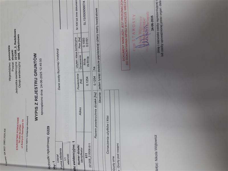 - nieruchomości, której właścicielem jest Nieruchomość gruntowa o pow.0,1254 ha położonej przy dz.nr 611, 76-200 Gałęzinowo, dla której Nieruchomośc gruntowa o pow.0,1254 ha (adres: ul. dz.nr 611, Gałęzinowo, 76-200 Gałęzinowo) prowadzi księgę wieczystą o numerze SL1S/00095667/4.