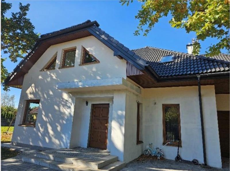 Na gruncie posadowiony jest budynek mieszkalny: wolnostojący, dwukondygnacyjny (poddasze użytkowe) wybudowany w 2020 r. w technologii tradycyjnej, murowanej. Budynek wzniesiony na planie wieloboku, z wielospadowym dachem i garażem w bryle budynku, niepodpiwniczony. Dach wielospadowy z oknami dachowymi, konstrukcji drewnianej, pokryty dachówką ceramiczną. Budynek ocieplony, otynkowany tynkiem elewacyjnym. Stolarka okienna drewniana. Rynny i rury spustowe – PVC. Komin murowany. Budynek mieszkalny według gotowego projektu „Stylowy 1” zaprojektowanego przez „Domy z wizją”. Powierzchnia zabudowy: 159,30 m2. Budynek wyposażony w instalacje: elektryczną, wodno-kanalizacyjną, C.O. i C.W.U., gazową (kocioł gazowy dwufunkcyjny z zasobnikiem ciepłej wody użytkowej). Standard wykończenia i wyposażenia określono jako bardzo dobry. Stan techniczny budynku i pomieszczeń na dzień określenia wartości oceniono jako bardzo dobry.