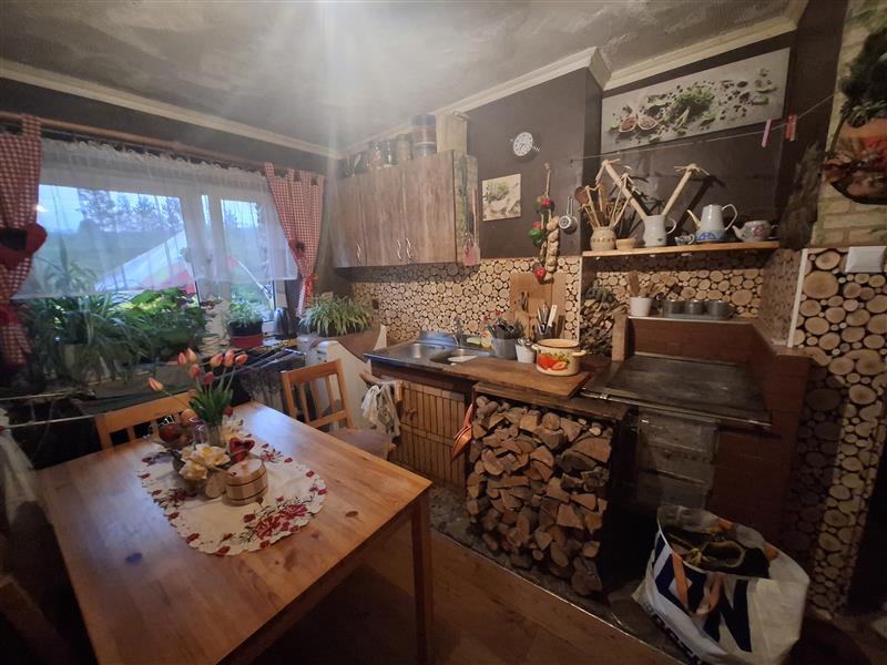 - instalacje wewnętrzne: elektryczna, wod-kan, ogrzewanie lokalne z trzonu kuchennego z podkową, kominek, w 1 pokoju - brak ogrzewania. W lokalu brak kaloryferów.