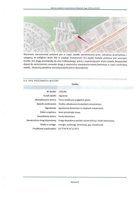 działka oznaczona numerem geodezyjnym 1701/65, obręb ewidencyjny 19 Skorupy o powierzchni 0,0699 ha położona pod adresem: 15-546 Białystok, ul. Zaułek Podlaski 58C, zabudowana budynkiem mieszkalnym w zabudowie bliźniaczej.