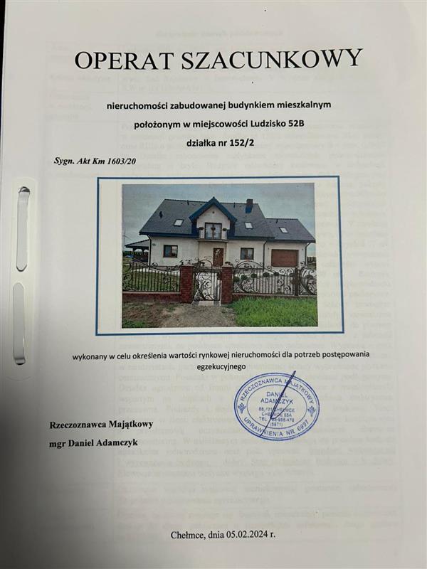 - nieruchomości położonej przy Ludzisko 52B nr dz152/2, 88-160 Janikowo, dla której Sąd Rejonowy w Inowrocławiu V Wydział Ksiąg Wieczystych (adres: ul. Narutowicza 42, Inowrocław, 88-100 Inowrocław) prowadzi księgę wieczystą o numerze BY1I/00066241/5.