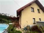 Nieruchomość położona jest w miejscowości Zagórze, gmina Niepołomice. Otoczenie i sąsiedztwo przedmiotowych nieruchomości stanowi zabudowa mieszkaniowa jednorodzinna oraz tereny niezagospodarowane, zieleni i rolne. Działka ewidencyjna nr 509/7 o powierzchni 0,0997 ha, zabudowana jest budynkiem mieszkalnym, jednorodzinnym. Budynek zrealizowany około 2013 roku jako obiekt parterowy z użytkowym poddaszem, niepodpiwniczony z garażem w bryle budynku. Budynek wykonany w technologii tradycyjnej murowanej. Ściany zewnętrzne ocieplone pokryte tynkiem mineralnym. Strop żelbetowy. Dach o konstrukcji drewnianej, ocieplony, pokryty dachówką. Stolarka okienna PCV. Okna dachowe drewniane. Drzwi wejściowe antywłamaniowe. Stolarka drzwiowa wewnętrzna typowa. Budynek wyposażony w instalacje: elektryczną, kanalizacyjną (szambo), gazową, wodną, teletechniczną, ogrzewanie gazowe c.o. z pieca gazowego, częściowo podłogowe, kominek znajdujący się w salonie.