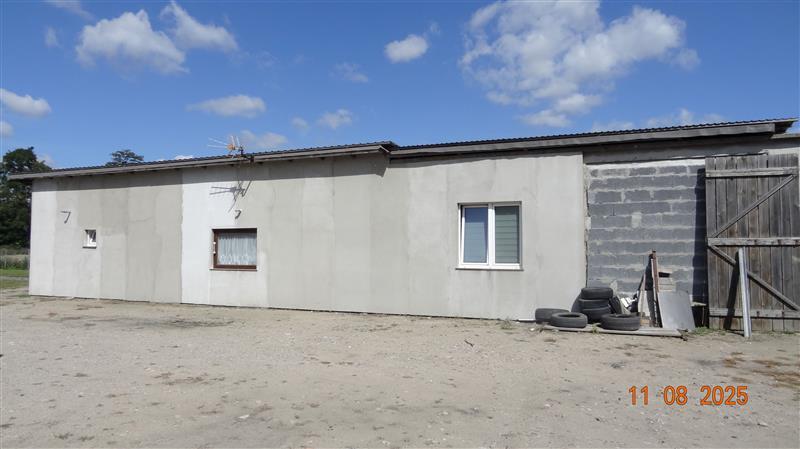 Kompleks budynków gospodarczych i garaży - o powierzchni użytkowej 121,00 m2. Budynki zaadaptowane na cele mieszkalne. Brak decyzji, zgłoszeń, zawiadomień właściwych organów nadzoru budowlanego oraz organów administracji architektoniczno-budowlanej. Program użytkowy: 3 pokoje, salon z kuchnią oraz łazienka.