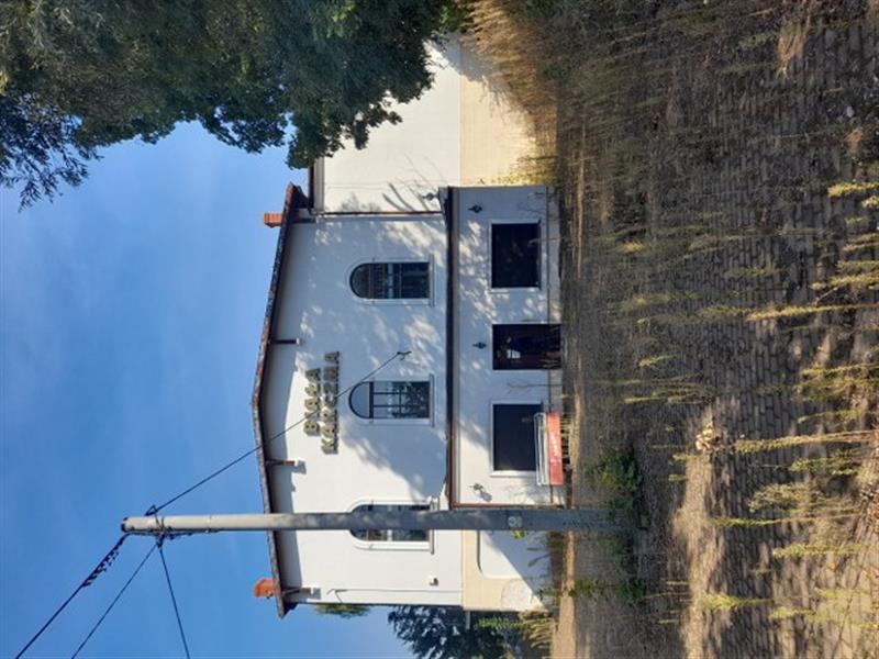 Działka o numerze ewid. 196/1 o powierzchni 4344m2 ma kształt nieregularny, teren ogrodzony, z deniwelacjami. Nieruchomość sklasyfikowana jest w ewidencji gruntów jako B - tereny mieszkaniowe. Na nieruchomości znajduje się zabytkowy budynek z 1898 r. zwany „Białą Karczmą”, jest to obiekt murowany, wielobryłowy, wolnostojący, częściowo podpiwniczony, częściowo parterowy z poddaszem użytkowym, częściowo piętrowy, o dachu wielospadowym krytym papą. Powierzchnia użytkowa budynku Pu = 1338,3 m2, powierzchnia zabudowy Pz = 698 m2. W obiekcie poza częścią piwniczną i częścią restauracyjną znajduje się także część hotelowa. Na poziomie piwnicy znajdują się dwie sale, jedna o powierzchni ok. 125 m2, druga ok. 50 m2 oraz część magazynowa, toalety, kotłownia. Druga kondygnacja obejmuje część restauracyjną z salą balową ok 300 m2, kuchnie z zapleczem oraz część biurową. Ostatnia, trzecia kondygnacja to część hotelowa (pięć pokoi) i strych. Budynek wyposażony jest w klimatyzatory oraz monitoring.