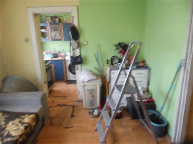 - kuchnia, pokój 1 i 2 – stara wykładzina PCV, ściany pomalowane farbami,