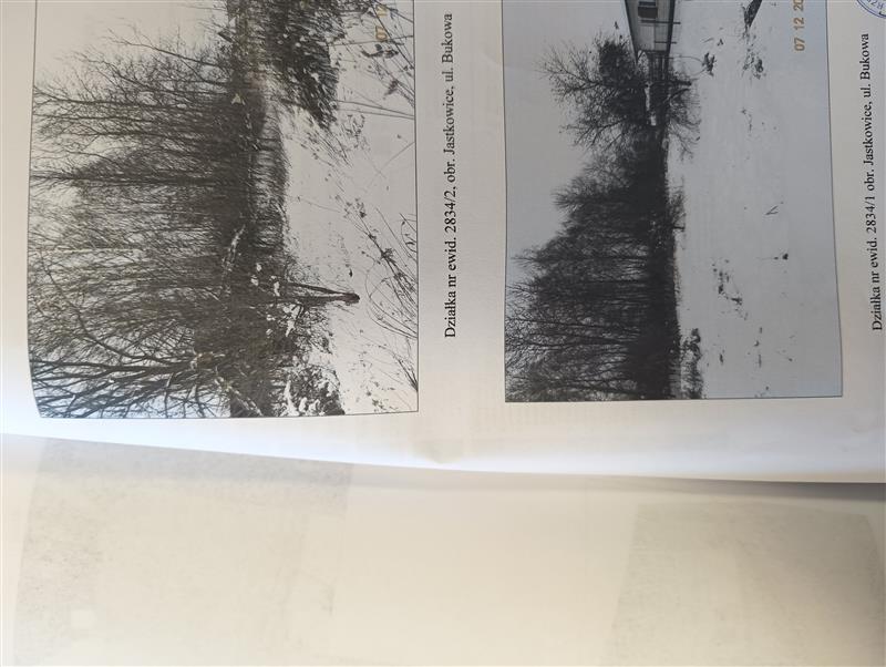 Działka nr ewid. 2834/1 o pow. 0,14 ha, pas gruntu o szerokości ok. 14 m zwężający się w kierunku wschodnim, teren obniżony w stosunku do drogi, w części zarośnięta drzewami. Uzbrojenie – woda, eNN., w sąsiedztwie kanalizacja sanitarna sieciowa, gaz, telekomunikacja. Dojazd do działek drogą asfaltową - ul. Bukowa.