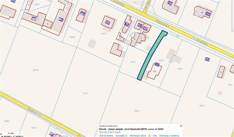 udział 1/4 w działce nr 524/2 położonej przy ul. Poznańskiej w Kamionkach o pow. 300 m(2) z dostępem do drogi publicznej (ul. Poznańska) Media - gaz, prąd, woda, kanalizacja sanitarna, telefon