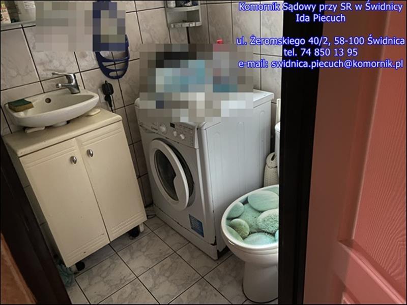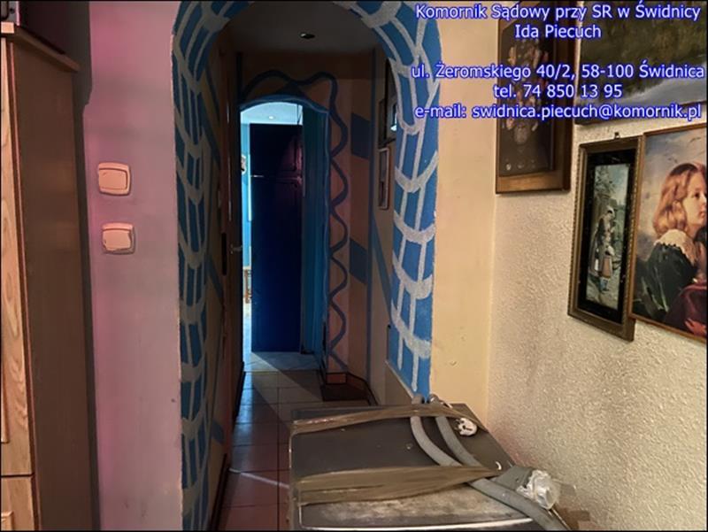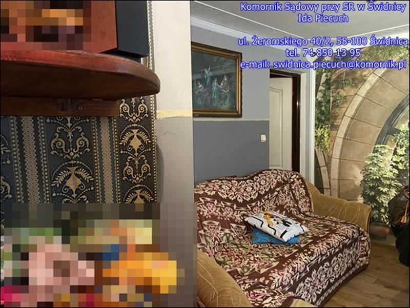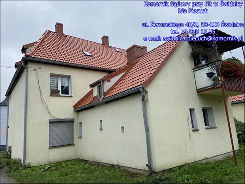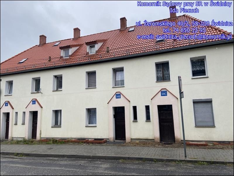 Nieruchomość należąca do dłużnika: Paweł Elżbieciak, stanowiąca: lokal mieszkalny, stanowiący odrębną nieruchomość, składający się z dwóch pokoi, kuchni, sieni i WC; do lokalu przynależy udział w częściach wspólnych nieruchomości wynoszący 1330/10000, a także piwnica o nr 1 o pow. 3,2 m2 oraz komórka nr 1 o pow. 5,9 m2; powierzchnia całkowita: 47,20 m2. (powierzchnia wraz z pow. pomieszczeń przynależnych: 53,10 m2). Nieruchomość lokalowa, stanowiąca lokal mieszkalny nr 1, o powierzchni użytkowej 44,00m2 oraz pom. przynależne: piwnica o pow. 3,20m2 i komórka o pow. 5,90 m². Łączna pow. użytkowa lokalu wraz z pow. pom. przynależnych wynosi 53,10 m2. Lokal położony w mieście Jaworzyna Śląska, powiat świdnicki, przy ul. Jana Pawła II 14B/1, posadowionym na działce ew. nr 595/1, obręb nr 0001 Jaworzyna Śląska, AM-14, pow. świdnicki, woj. dolnośląskie. Dla ww. lokalu urządzona jest księga wieczysta, nr: SW1S/00038156/9 prowadzona przez Sąd Rejonowy w Świdnicy, V Wydział Ksiąg Wieczystych. Lokal położony jest na parterze budynku mieszkalnego przedwojennego (o 2 kondygnacjach nadziemnych). W lokalu na ścianach tynki strukturalne oraz tapety. Na podłogach w przedpokoju oraz w pomieszczeniach mokrych płytki ceramiczne, natomiast w pokojach panele podłogowe oraz wykładzina dywanowa. WC opłytkowane, wyposażone w kabinę prysznicową. Okna PCV. Drzwi płycinowe. Ogrzewanie w szacowanym lokalu piecem na opał stały C.O., który to usytuowany jest w kuchni. Do lokalu przyłączono sieci: energetyczną oraz wodno-kanalizacyjną. Gazu brak. W lokalu nie jest prowadzona żadna działalność gospodarcza. Zgodnie z MPZP obszar, na którym położona jest przedmiotowa nieruchomość oznaczony jest symbolem: 16.MWi stanowi tereny zabudowy mieszkaniowej wielorodzinnej.