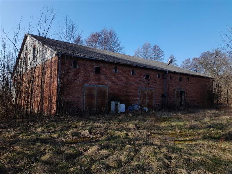 Nieruchomość gruntowa zabudowana oznaczona nr działki 6 o pow. 0,77 ha zabudowana budynkiem siedliska o pow. użytkowej ok. 43 m2 . budynkiem obory o pow. zabudowy ok 128 m2 , budynkiem stodoły o pow. zabudowy ok. 165 m2 oraz budynkiem hali warsztatowo - garażowej o pow. zabudowy ok. 523 m2