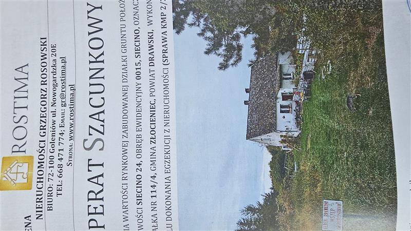 - nieruchomości położonej przy Siecino 24,Siecino, 78-520 Złocieniec, dla której Sąd Rejonowy w Drawsku Pomorskim (adres: ul. Jasna 3, Drawsko Pomorskie, 78-500 Drawsko Pomorskie) prowadzi księgę wieczystą o numerze KO1D/00002624/1.