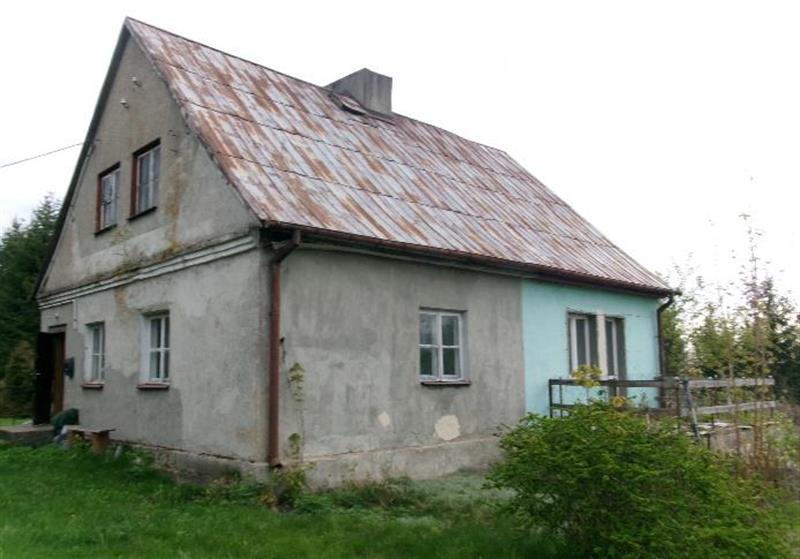 - opis budynku mieszkalnego - Budynek mieszkalny w zabudowie bliźniaczej, rok budowy nieznany, prawdopodobnie z lat 50 lub 60-tych, wg kartoteki budynków 1970. Bryła parterowa, podpiwniczenie, poddasze użytkowe. Funkcje poszczególnych kondygnacji: piwnica - gospodarcza, parter - przedsionek, kuchnia, pokój, wejście na poddasze; poddasze - jeden pokój, łazienka. Parametry budynku: powierzchnia użytkowa 57,40 m2, powierzchnia zabudowy 57 m2. Konstrukcja i elementy wykończeniowe budynku: fundamenty kamienno-betonowe, konstrukcja ścian tradycyjna murowana, cegła pełna. Strop nad parterem drewniany, wejście na poddasze - schody jednobiegowe, drewniane. Konstrukcja dachu drewniana, dwuspadowa, pokrycie z blachy. Stolarka okienna: okna drewniane skrzynkowe, w kuchni pcv po wymianie. Stolarka drzwiowa drewniana, tynki wewnętrzne, bez szpachlowania, lamperie. Podłogi: deski, wykładzina pcv, w łazience posadzka cementowa. Ogrzewanie: piece węglowe, kuchnia węglowa. Instalacje: energia elektryczna, wodociągowo-kanalizacyjna. Konstrukcja budynku w średnim stanie technicznym, wynikającym z wieku budynku. Elementy wykończeniowe zniszczone, okładziny ścienne, podłogowe bez remontów od wielu lat, osprzęt sanitarny zużyty. Stolarka okienna, drzwiowa w złym stanie technicznym. Armatura sanitarna zniszczona.