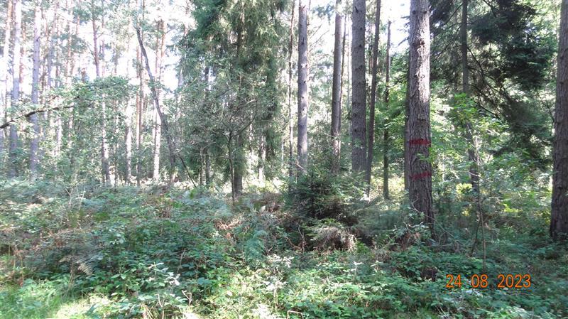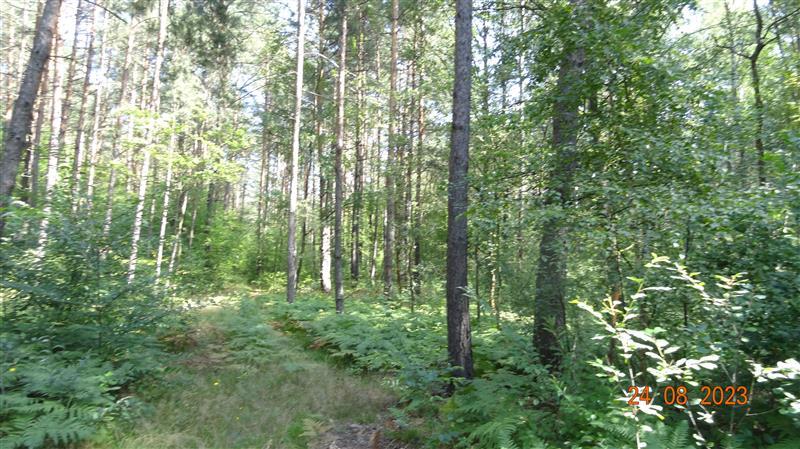 Działka nr ewid. 422 o powierzchni 0,3100 ha - o kształcie wydłużonego trapezu, o szerokości ok. 7,5 m.b. i głębokości ok. 413 m.b. Dojazd drogą publiczną gruntową - duktem leśnym. Teren nieogrodzony. Grunt leśny - działka jest zadrzewiona: sosna w wieku ok. 30-40 lat. Klasa użytków: Ls V, Ps VI.