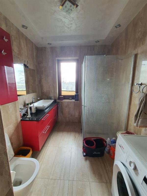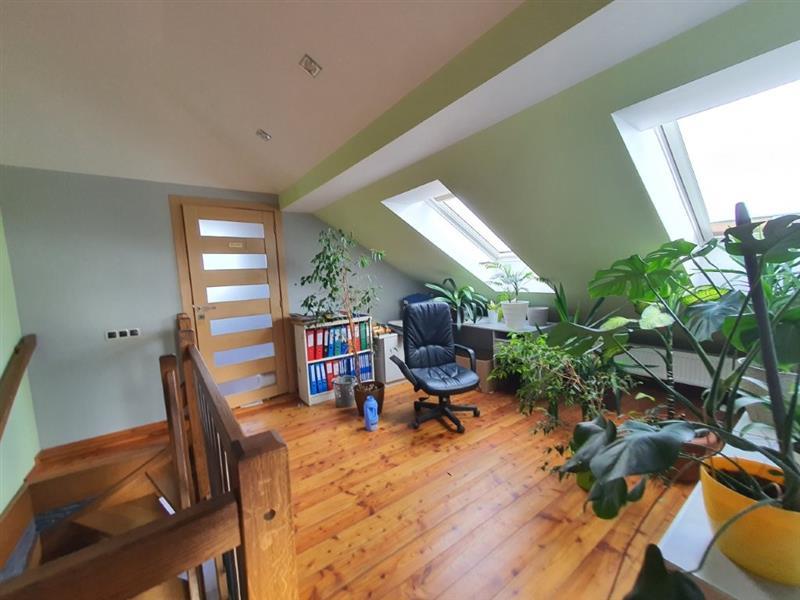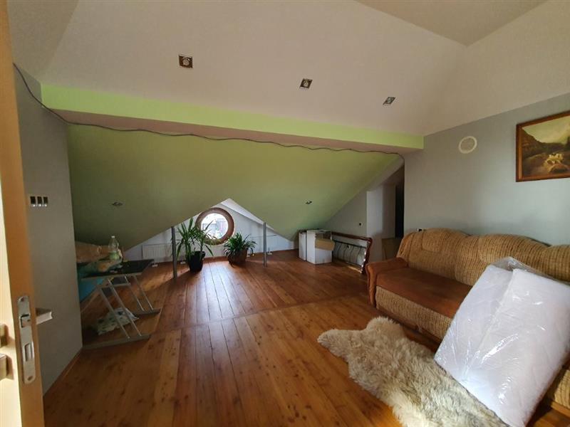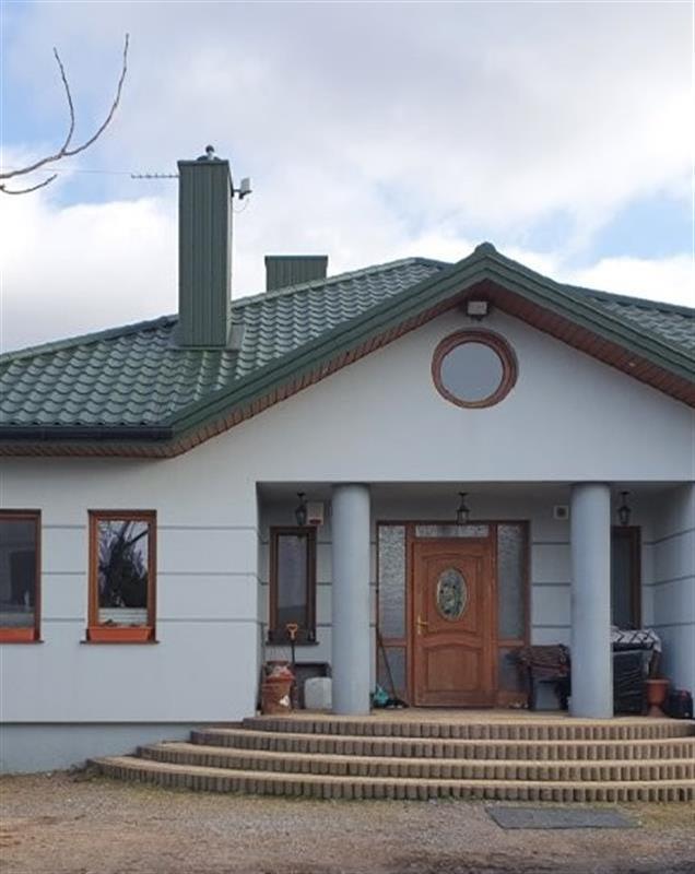 Działka nr 128/2 o pow. 15 091 m2 o wymiarach ok. 60,00 m x 252,00 m. Teren działki płaski, brak znaczących deniwelacji terenu. Działka jest ogrodzona w części siedliskowej, zagospodarowana. Działka częściowo ogrodzona ogrodzeniem z elementów betonowych w stanie technicznym średnim oraz ogrodzeniem panelowym w stanie technicznym dobrym. Od frontu brama stalowa z furtką, otwierane ręcznie. Działka 128/2 zabudowana jest budynkiem jednorodzinnym wolnostojącym, niepodpiwniczonym, parterowym z poddaszem użytkowym, o konstrukcji murowanej, o powierzchni zabudowy 159,00 m2, p.u. 127,98 m2. Budynek oddany do użytkowania w 2020 roku. Na parterze budynku znajdują się kuchnia z salonem, trzy pokoje, łazienka, holl. Podłogi: płytki ceramiczne, deski lakierowane, na ścianach tynki cementowo – wapienne malowane farbami emulsyjnymi, z tynkami ozdobnymi. Stolarka okienna PCV, drzwiowa płycinowa. Na poddaszu znajdują się trzy pokoje oraz łazienka. Na dzień oględzin budynek wykończony oraz w całości użytkowany zgodnie z przeznaczeniem. Budynek mieszkalny utrzymany w dobrym standardzie. Ze względu na jakość materiałów wykończeniowych ogólny stan techniczny budynku przyjęto jako dobry.