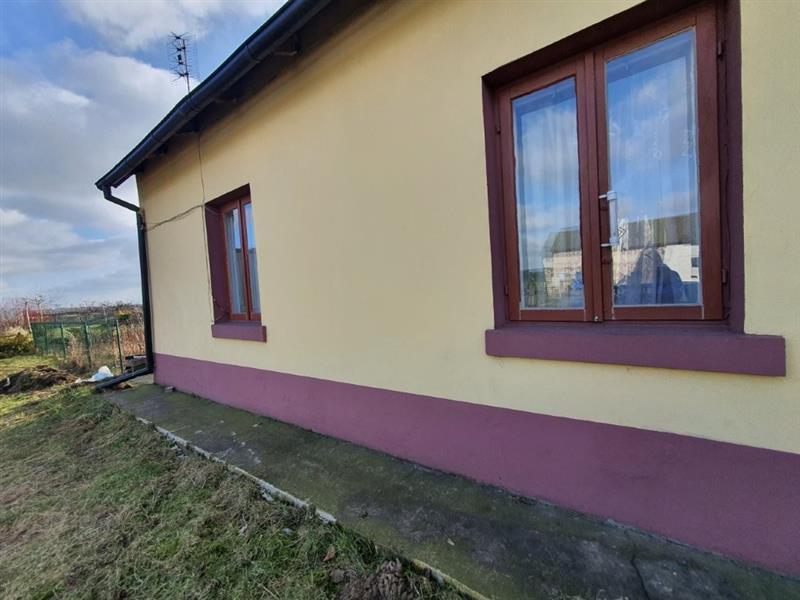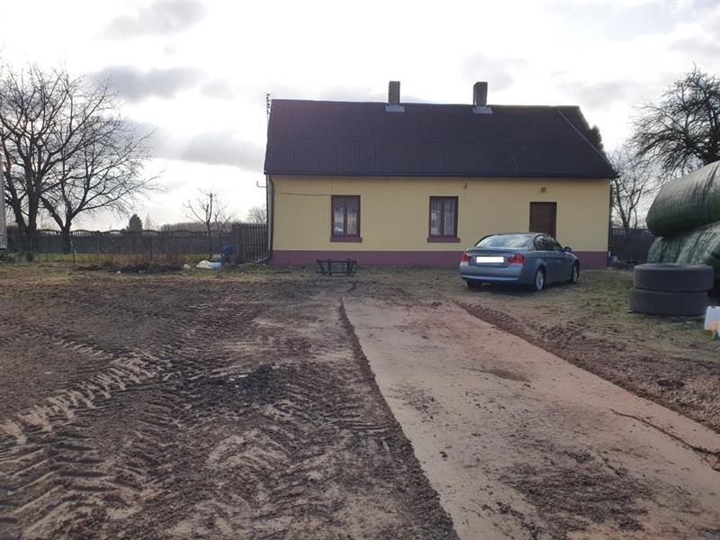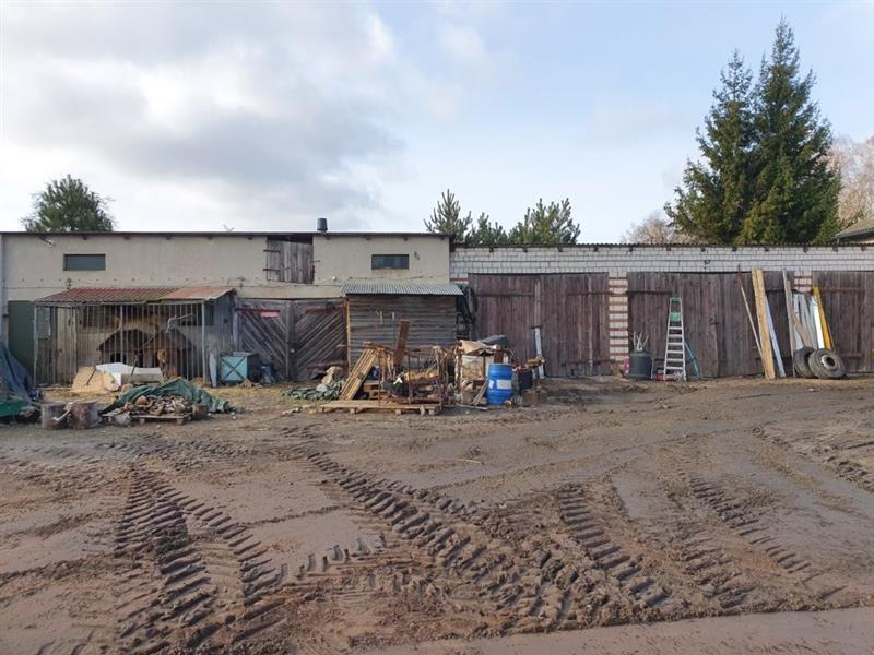 Działka nr 128/1 o pow. 19 793 m2 o wymiarach ok. 69,00 m x 287,00 m. Teren działki płaski, brak znaczących deniwelacji terenu. Działka jest ogrodzona w części siedliskowej, zagospodarowana. Działka częściowo ogrodzona ogrodzeniem z elementów betonowych w stanie technicznym średnim. Od frontu brama stalowa z furtką, otwierane ręcznie. Nieruchomość gruntowa zabudowana jest budynkiem jednorodzinnym wolnostojącym, niepodpiwniczonym parterowym o konstrukcji murowanej, o pow. zabudowy 67,00 m2, pow. uż. 56,95 m2. Na działce znajduje się zabudowa gospodarcza: stodoła o pow. zab. 308 m2, p.u. 261,80 m2, budynek gospodarczy o pow. zab. 108 m2, p.u. 91,80 m2, budynek gospodarczy o pow. zab. 63 m2, p.u. 53,55 m2, budynek gospodarczy o pow. zab. 70 m2, p.u. 59,50 m2. Zabudowa siedliskowa powstała w latach 60 – tych XX w. Budynek mieszkalny murowany parterowy, dach dwuspadowy o konstrukcji drewnianej. kryty papą. Stolarka okienna drewniana, starego typu, stolarka drzwiowa płycinowa typowa. Dom składa się z kuchni, dwóch pokoi oraz WC.