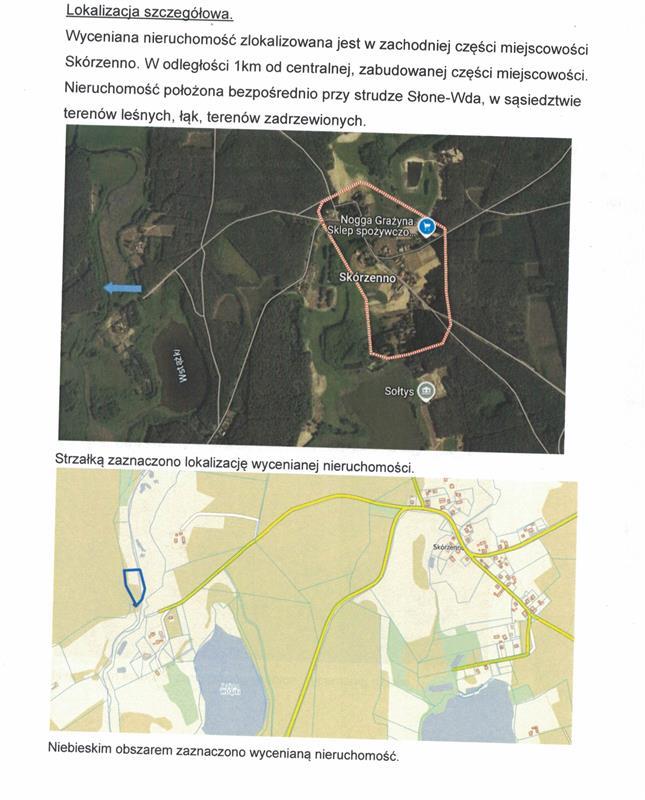 Sprzedaży podlega udział w wysokości 1/2 części nieruchomości. Pow. 5000 mkw, położona bezpośrednio przy strudze Słone-Wda, w sąsiedztwie terenów leśnych, łąk, terenów zadrzewionych. Teren podmokły od strony strugi, z drugiej porośnięty drzewami i krzakami.