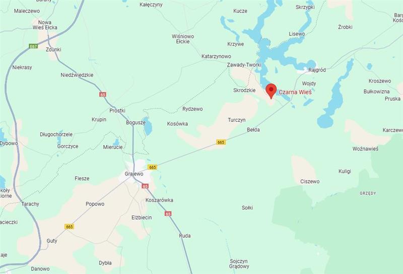 - nieruchomości położonej przy 61,Czarna Wieś, 19-206 Rajgród, dla której Sąd Rejonowy w Grajewie IV Wydział Ksiąg Wieczystych (adres: ul. ul. Wojska Polskiego 82, Grajewo, 19-200 Grajewo) prowadzi księgę wieczystą o numerze LM1G/00031575/2.