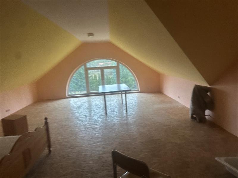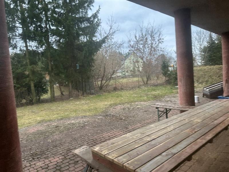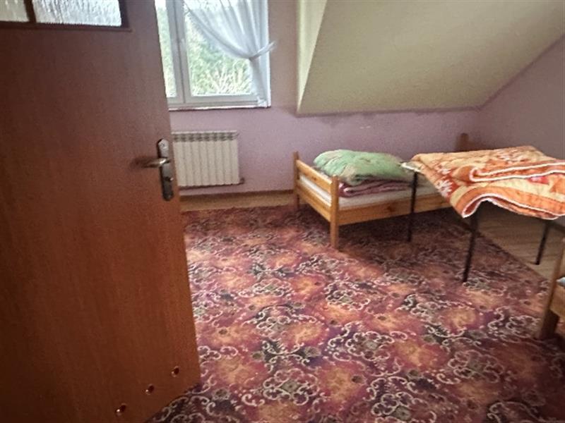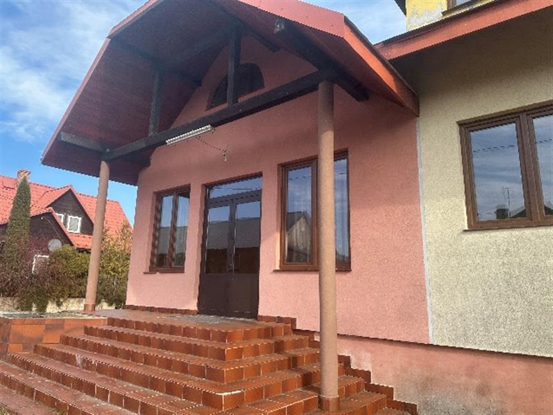 Budynek o funkcji handlowo – usługowej wolnostojący, 1-kondygnacyjny z poddaszem użytkowym, w pełni podpiwniczony. Budynek wykonany w technologii tradycyjnej murowanej, z dachem dwuspadowy z wykuszami o konstrukcji drewnianej, kryty gontem. Budynek został wybudowany w 1980 roku – zgodnie z kartoteką budynków. Powierzchnia zabudowy budynku mieszkalnego: 348,00 m2. Na parterze budynku część biurowa oraz restauracyjno – kuchenna, na poddaszu pokoje z łazienkami, w części piwnicznej część gospodarcza (kotłownia i pomieszczenia techniczno – gospodarcze) i zaplecze klubowe.