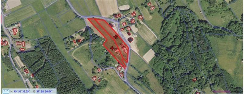 Działka nr ew 470/1 o powierzchni 0,5208 ha położona w Grudnej Dolnej bezpośrednio przy drodze gminnej utwardzonej asfaltem, jednak aktualnie wjazd na działkę odbywa się po działce 472/1. Działka 470/1 w kształcie nieforemnym, wydłużonym o zróżnicowanej szerokości od ok 6m w południowej części, ok 42,8m w części środkowej do 21,00m w części północnej i długości około od 121m do ok 222m, od strony północnej i południowej działka przylega do drogi gminnej, natomiast od strony zachodniej i wschodniej do gruntów zabudowanych budynkami mieszkalnymi i rolnych. Na dzień oględzin działka porośnięta trawą. Przez działkę przebiega sieć gazowa i energii elektrycznej. Działka położona na wzniesieniu ze spadkiem terenu w kierunku północnym, deniwelacja terenu wynosi ok 30m w kierunku północnym. W części środkowej działka zabudowana murowanym parterowym, częściowo podpiwniczonym budynkiem mieszkalnym. Ściany piwniczne częściowo wylewane, a częściowo murowane z pustaków żużlobetonowych. Ściany nadziemia murowane z żużlobetonowych w układzie warstwowym. Elewacja budynku wykonana z tynku tradycyjnego w znacznej części odspojonego. Budynek posiada strop żelbetowy wylewany nad piwnicą oraz nad parterem. Część ścian parteru oparta jest na płycie stropowej, a układ ścian piwnic budzi wątpliwości prawidłowego podparcia. Konstrukcja budynku jest podatna na przemieszczanie fundamentów i w przypadku ruchów