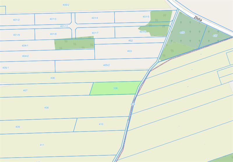 2. działki ewidencyjnej nr 336 o powierzchni 4100 metrów kwadratowych, która nie jest objęta miejscowym planem zagospodarowania przestrzennego, a według studium uwarunkowań i kierunków zagospodarowania przestrzennego jest położona w przeważajacej części na obszarach rozwoju zabudowy mieszkaniowej jednorodzinnej, usług nieuciążliwych itp. (88%) oraz w znikomej części na obszarach rolnych (12%);