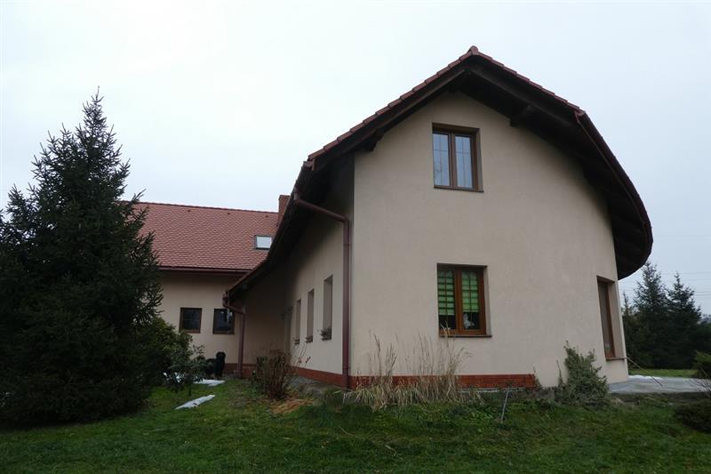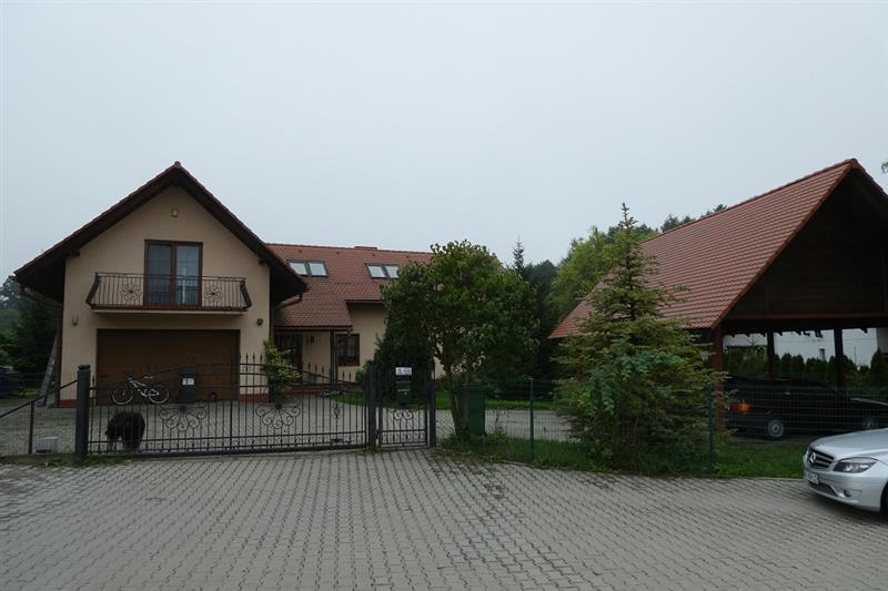 Dom jednorodzinny w zabudowie wolnostojącej: budynek mieszkalny jednorodzinny, piętrowy (parter + poddasze użytkowe), niepodpiwniczony. Konstrukcja murowana tradycyjna. Wyposażenie w instalacje: pełne. Lata budowy: 2005 – 2006r. Powierzchnia zabudowy: 246,42 m2. Powierzchnia całkowita: 381,21m2. Kubatura: 1257,60 m3. Powierzchnia użytkowa: 244,19 m2 (parter 151,16 m2; piętro 93,03 m2). Program użytkowy: parter: wiatrołap, pokój mieszkalny, jadalnia, kuchnia, spiżarka, komunikacja, pokój gościnny, łazienka, pomieszczenie gospodarcze, spiżarka, garaż, kotłownia.