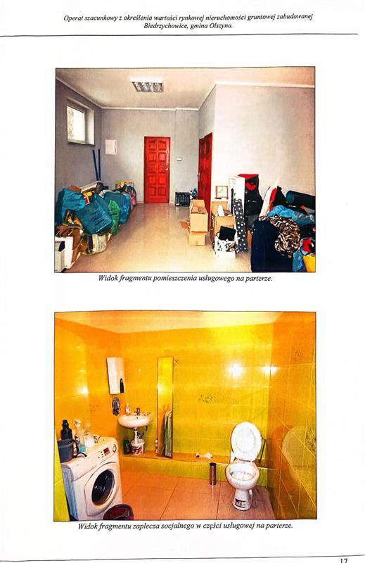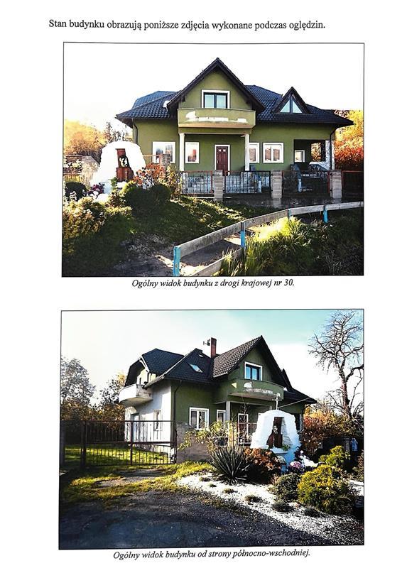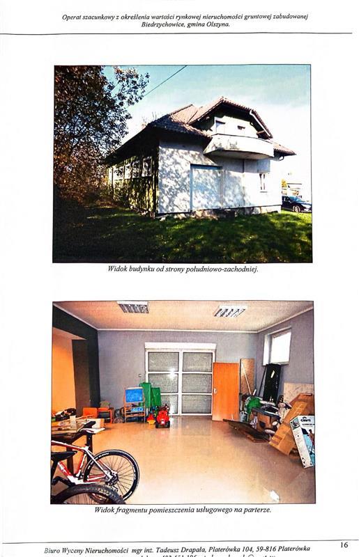 Nieruchomość gruntowa zabudowanej budynkiem mieszkalno-usługowym w trakcie realizacji (dz. nr 523/1), oraz działka 524/4  niezabudowana, porośnięta trawą, samosiewami drzew i krzewów różnych gatunków w różnym wieku.  Przez nieruchomość przebiega gminna sieć wodociągowa ksD160, sieć telekomunikacyjna, a nad nieruchomością przebiega sieć elektroenergetyczna. Nieruchomość posiada wykonane przyłącza sieci: energii elektrycznej, wodociągowej i kanalizacyjnej. Przeznaczenie nieruchomości: gruntowa położona jest w jednostce planistycznej oznaczonej jako: MR1 - tereny funkcji mieszkaniowej oraz usługowo produkcyjnej. Nieruchomość posiada zagwarantowany dostęp do drogi publicznej - drogi krajowej nr 30 relacji Zgorzelec-Jelenia Góra pośrednio przez działkę nr 522/3 i 143/2, będącą własnością Gminy Olszyna. Nieruchomość o regularnym kształcie wielokąta, przylega od strony południowo-zachodniej do wysokiej skarpy, zabezpieczonej murem oporowym z kamienia i bloczków betonowych. Wzdłuż północnej i południowo-zachodniej granicy nieruchomości jest ogrodzona płotem z elementów stalowych w ramach osadzonych na słupach betonowych z podmurówką betonową. W ogrodzeniu występują dwie bramy stalowe, jedna od strony wschodniej stanowiąca wyjazd na drogę krajową, druga od strony północnej, przez którą realizowany jest aktualnie dostęp do drogi publicznej przez działkę nr 522/3 i 143/2.