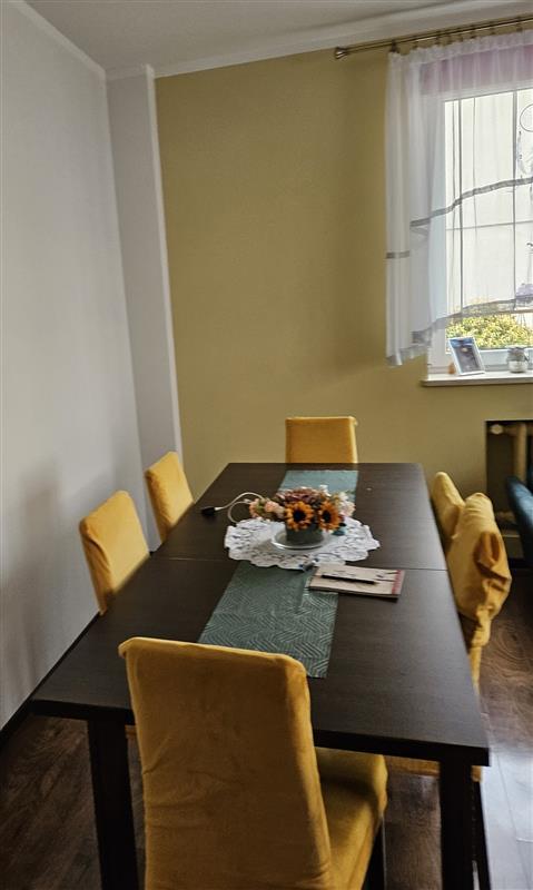 Budynek mieszkalny jednorodzinny w zabudowie wolnostojącej, wybudowany w technologii tradycyjnej w drugiej połowie XX wieku. Obiekt parterowy z poddaszem użytkowym, niepodpiwniczony. Ogólny stan techniczny budynku korzystny. Budynek funkcjonalnie składa się z: parter - (wiatrołap,korytarz,kuchnia,trzy pokoje,łazienka, pralnia, kotłownia)poddasze:(przedpokój,dwa pokoje,pomieszczenie gospodarcze).