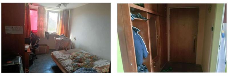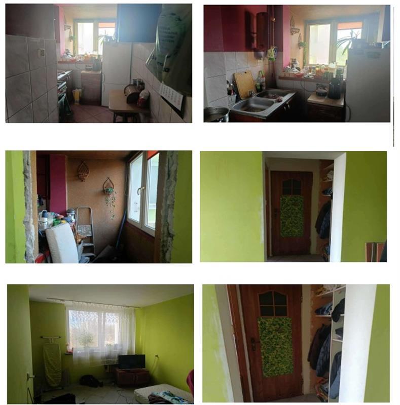 Balkon połączono z powierzchnią pokoju i kuchni. Stan techniczny – zadowalający, do remontu.