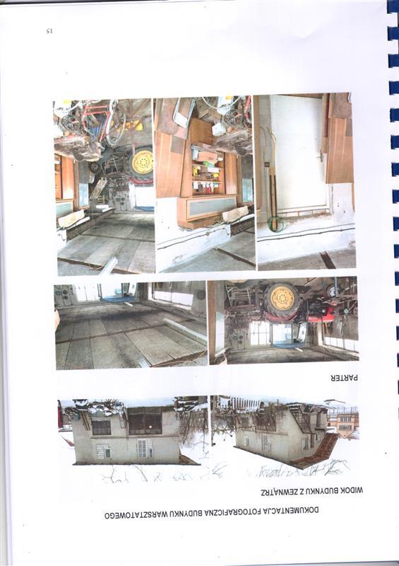 Nieruchomość zabudowana budynkiem warsztatowym z częścią socjalną z okresu lat 80-tych XX w., położona w granicach działki gruntu nr 486 obszaru 0,0500 ha w obrębie wsi Grodziszcze nr 85, w gminie Świdnica, powiecie świdnickim, województwie dolnośląskim, dla której Sąd Rejonowy w Świdnicy - Wydział V Ksiąg Wieczystych prowadzi księgę wieczystą nr KW SW1S/00073978/4. Działka gruntu nr 486 o pow. 0,05 ha zabudowana jest budynkiem warsztatowym z częścią socjalną, wolnostojącym, dwukondygnacyjnym, niepodpiwniczonym, o całkowitej powierzchni 160 m2. W bezpośrednim sąsiedztwie mają miejsce budynki mieszkalne jednorodzinne wraz z towarzyszącą zabudową gospodarczą wzniesione w dawnym układzie wiejskim. Po przeciwnej drodze znajduje się rzeka Piława. Wokół obszarów zabudowy znajdują się tereny upraw polowych. Wskazana działka posiada bezpośredni dostęp do drogi publicznej tj. działki gruntu nr 544/5 stanowiącej drogę gminną nr 111798D o utwardzonej nawierzchni. Teren, na którym znajduje się budynek uzbrojony jest w sieci: wodociągową, kanalizacyjną, energię elektryczną. Przynależny ogród jest niezagospodarowany, brak jest utwardzenia terenu, nieruchomość jest ogrodzona siatką stalową osadzoną na słupkach stalowych. Działka nr 486 ma kształt nieregularny, ale dogodny pod względem zabudowy. Opisując stan techniczno-użytkowy gruntu nr 486 o pow. 0,05 ha należy wspomnieć, iż jest to budynek warsztatowy z częścią socjalną, o kształcie prostej bryły oraz krytym dachem dwuspadowym, o konstrukcji drewnianej. Dostęp do pomieszczeń mających miejsce na piętrze jest możliwy poprzez stalowe schody zewnętrzne. Obecnie parter nieruchomości stanowi pomieszczenie warsztatowo-garażowe, natomiast na piętrze zostały rozpoczęte prace adaptacyjne. Ściany konstrukcyjne budynku warsztatowego są murowane z pustaków, elewacja pokryta jest tynkiem cienkowarstwowym. Stolarka okienna jest drewniana, okna PCV znajdują się na poddaszu. Ślusarka stalowa ma miejsce na parterze, a szyby są częściowo stłuczone. W budynku są wmontowane drzwi drewniane dwuskrzydłowe oraz drzwi płytowe wewnętrzne. Podłogi mają wylewkę betonową, na parterze natomiast jest posadzka z ubytkami. Na poddaszu brak wypraw tynkarskich, w części warsztatowej są tynki gładkie, cementowo-wapniowe, miejscami brak warstwy tynkowej. Schody zewnętrzne mają konstrukcję stalową, stopnie są drewniane. Brak połączenia pomiędzy kondygnacjami wewnątrz budynku oraz brak ogrzewania na parterze. Zgodnie z opinią rzeczoznawcy należy uznać stan techniczno-użytkowy oraz stan funkcjonalny budynku warsztatowego jako średni, co oznacza, że mają miejsce niewielkie uszkodzenia i ubytki nie zagrażające bezpieczeństwu użytkowania . Wymagane jest dokonanie napraw, polegających na wymianie niektórych elementów obiektu budowlanego. Parter oraz elewacja budynku kwalifikują się do remontu, a piętro do wykończenia wraz z wykonaniem wszystkich instalacji.