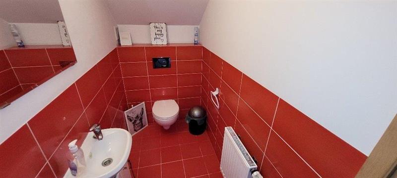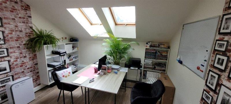 Budynek parterowy z poddaszem użytkowym, niepodpiwniczony, budowany w technologii tradycyjnej o fundamentach żelbetowych. Ściany fundamentowe z bloczków betonowych. Ściany zewnętrze murowane z cegły ceramicznej na zaprawie cementowo – wapiennej, ocieplone styropianem. Kominy z cegły pełnej. Strop - teriva. Dach wielospadowy o konstrukcji drewnianej ocieplony wełną mineralną, kryty blachodachówką. Obróbki blacharskie z blachy stalowej powlekanej, rynny i mury spustowe PCV. Tynki zewnętrzne cienkowarstwowe. Tynki wewnętrzne cementowo – wapienne. Stolarka okienna PCV z roletami zewnętrznymi, okna połaciowe drewniane. Stolarka drzwiowa zewnętrzna PCV, wewnętrzna drewniana płycinowa. Nadproża i wieńce żelbetowe. Posadzki betonowe w zależności od pomieszczenia wyłożone płytkami, panelami, wykładzina PCV i dywanową. Schody stalowe, balustrady stalowe szklone. Ściany i sufity malowane farbą emulsyjną. W łazienkach częściowo wyłożone płytkami ściennymi. Uzbrojenie techniczne w budynku: prąd, wodociąg, kanalizacja, gazowa, c.o. i cw z pieca na gaz, telekomunikacyjna, alarmowa.