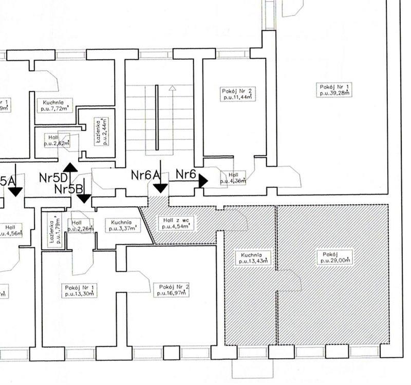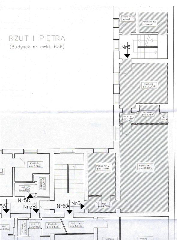 lokal mieszkalny nr 6 A o powierzchni użytkowej 46,97 m2, usytuowany na I piętrze, składający się z holu, pokoju, kuchni oraz piwnicy nr 6 A o powierzchni użytkowej 15,64 m2, wraz z udziałem 6261/232482 prawa własności działki ozn. nr 147, wartość pozostałych części wspólnych budynków w udziale 6261/232482,