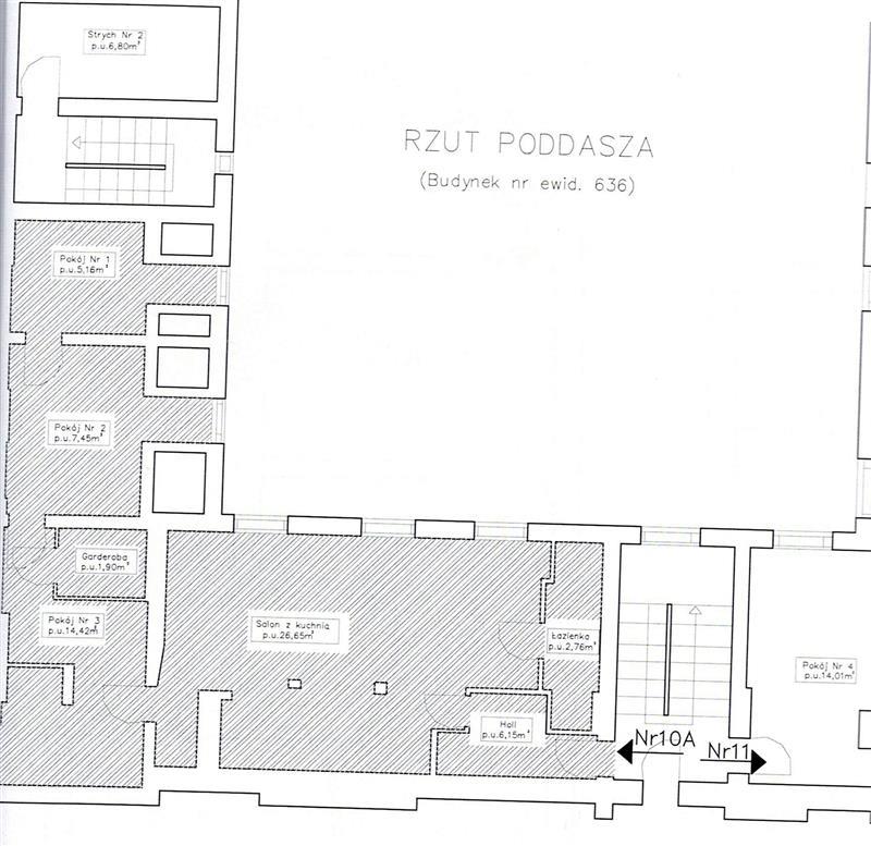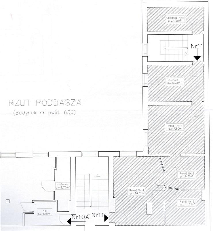 lokal mieszkalny nr 11 o powierzchni użytkowej 48,72 m2, usytuowany na poddaszu, składający się z kuchni, pokoju nr 1, pokoju nr 2, pokoju nr 3, pokoju nr 4 oraz komórki nr 11 o powierzchni użytkowej 4,20 m2, wraz z udziałem 5292/232482 prawa własności działki ozn. nr 147, wartość pozostałych części wspólnych budynków w udziale 5292/232482,