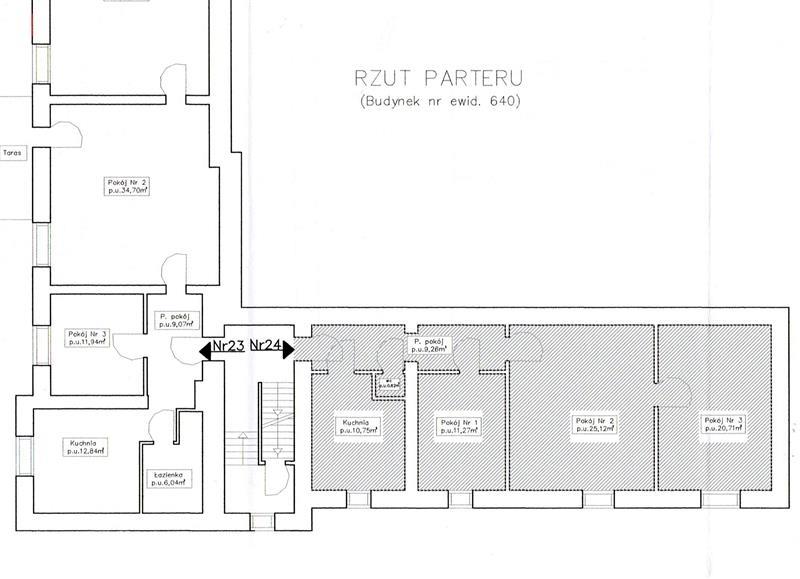lokal mieszkalny nr 24 o powierzchni użytkowej 77,73 m2, usytuowany na parterze, składający się z przedpokoju, wc, kuchni, pokoju nr 1, pokoju nr 2, pokoju nr 3, oraz piwnicy nr 24 o powierzchni użytkowej 2,95 m2, wraz z udziałem 8068/232482 prawa własności działki ozn. nr 147, wartość pozostałych części wspólnych budynków w udziale 8068/232482,
