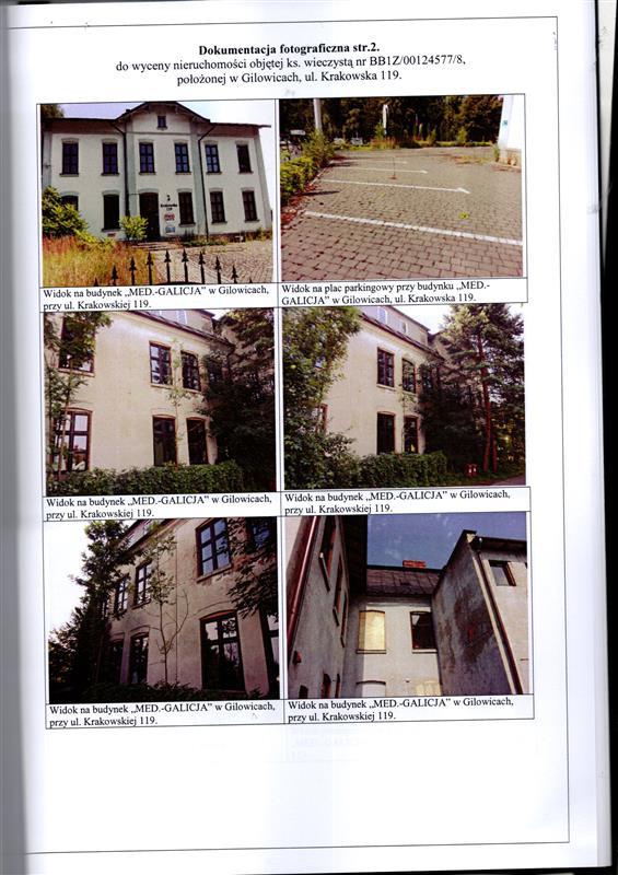 - nieruchomości położonej przy Krakowska 119, 34-322 Gilowice, dla której SĄD REJONOWY ŻYWIEC V WYDZIAŁ KSIĄG WIECZYSTYCH (adres: ul. Kościuszki 39, ŻYWIEC, 34-300 Żywiec) prowadzi księgę wieczystą o numerze BB1Z/00124577/8.