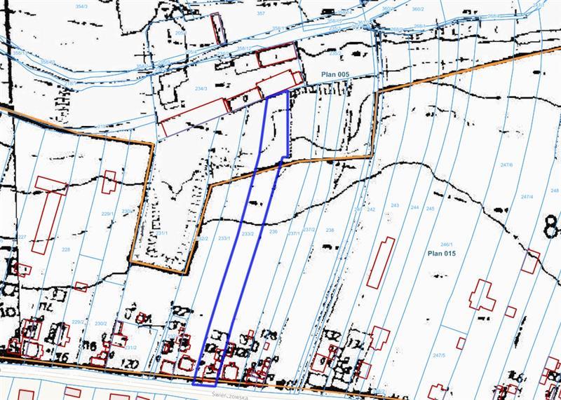 działka ozn. nr 233/2 o powierzchni 0,3675 ha, (obręb nr 36). Część frontowa działki nr 233/2, przylegająca do ul. Świerczowskiej, o powierzchni ok. 1035 m2, stanowi grunt zabudowany, zagospodarowany. Na tej części działki znajduje się murowany budynek mieszkalny o pow. użytkowej 150,07 m2, zwarty z murowanym budynkiem gospodarczo-garażowym o pow. użytkowej 67,90 m2, wybudowany w 1970r., zaś w latach następnych remontowany i modernizowany. W tej części nieruchomości znajduje się również altana, o konstrukcji drewnianej, niezwiązana trwale z gruntem. Teren zabudowanej części jest ogrodzony z frontu płotem murowanym z cegły klinkierowej, uzupełniony metalowymi przęsłami, zaś pozostała część ogrodzenia stanowi płot z siatki metalowej, wspartej na metalowych słupkach, osadzonych w betonowych gniazdach. Pozostała część działki o pow. 2 640 m2 jest niezagospodarowana. Nieruchomość posiada dobrą infrastrukturę techniczną, z ul. Świerczowskiej posiada dostęp do sieci elektrycznej, wodociągowej i kanalizacyjnej. Nieruchomość jest położona na terenie posiadającym plan zagospodarowania przestrzennego ( zatwierdzony uchwałą rady miasta nr XII/246/99 z dnia 08-09-1999 ). Zgodnie z planem dopuszcza się na tym terenie zabudowę mieszkaniową oraz związaną z obsługą rolnictwa, zamienną i uzupełniającą w ramach istniejących podziałów na głębokości do 60 m od ul. Świerczowskiej. Dopuszcza się zabudowę mieszkaniową z towarzyszącymi usługami na działkach, których wielkość w wyniku podziału wynosi minimum 2 000 m2, a szerokość frontu minimum 40 m. Obowiązuje zakaz lokalizacji obiektów szkodliwych i uciążliwych dla otoczenia,