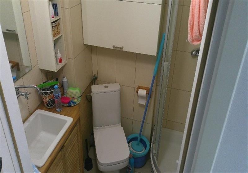 Kabina prysznicowa z brodzikiem (bez dolnej zabudowy), toaleta kompakt dolnopłuk, umywalka, piecyk gazowy Junkers (c.w.u.), wentylacja grawitacyjna