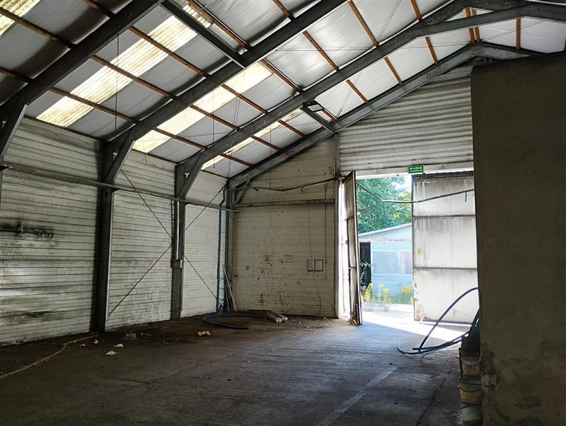 a). budynkiem hali produkcyjnej, wykonanej z pustaków gazobetonowych oraz bloczków silikatowych (stanowiących budulec ścian zewnętrznych), złożonej z trzech przyległych do siebie budynków, stanowiących jednolitą całość produkcyjną, obejmującą część produkcyjną, socjalną i biurową, wykorzystywanym uprzednio do produkcji drutu, o łącznej powierzchni zabudowy: 905,50 m 2 oraz powierzchni użytkowej: 846,90 m 2 (z czego powierzchnia użytkowana części produkcyjnej wynosi: 789,30 m 2, części socjalnej: 29,30 m 2 oraz części biurowej: 28,30 m 2), wyposażonym w instalacje: wewnątrz hali: elektryczną (siła) i wentylacyjną, zaopatrzonym w części produkcyjnej w bramy stalowe dwuskrzydłowe, rozsuwane, wykonane z blachy, z umieszczonymi w górnych ich częściach szybami, o dachu o konstrukcji stalowo - betonowej z płyt korytkowych, pokrytym blachą, b). budynkiem wiaty magazynowej, o konstrukcji stalowej, dobudowanej do hali od strony drogi, o powierzchni użytkowej: 96,50 m 2, obejmującej murowaną część socjalną (szatnię), o powierzchni użytkowej: 18,20 m 2, usytuowaną pod wiatą;