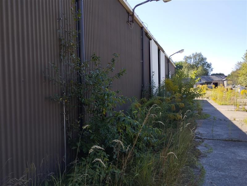 a). ok. 18 - letnim budynkiem hali produkcyjnej, dwunawowym, wolnostojącym, parterowym, bez podpiwniczenia, o konstrukcji mieszanej (budynek hali o konstrukcji stalowej, ściany z płyt warstwowych, a ściany węzła socjalno - biurowego wykonane są z pustaków Unimax), z wydzieloną częścią biurowo - socjalną, o łącznej powierzchni zabudowy: 1.091,00 m 2 (według obmiaru na mapie: 1.110,00 m 2 ) oraz powierzchni użytkowej części produkcyjnej: 914,00 m 2 i części socjalno - biurowej: 144,11 m 2, wykorzystywanym uprzednio jako hala produkcyjna do produkcji drutu i wyrobów z drutu, wyposażonym w instalacje: elektryczną (siła) i wentylacyjną, wodno - kanalizacyjną i grzewczą w postaci ogrzewania elektrycznego i klimatyzacji, oraz ogrzewania hali ciepłem technologicznym, zaopatrzonym w trzy bramy stalowe dwuskrzydłowe, rozsuwane - aktualnie uszkodzone, wykonane z płyt warstwowych z ociepleniem oraz w plastikowe drzwi do części socjalno - biurowej, o dachu dwuspadowym - dla każdej z dwóch naw - o konstrukcji stalowej, płatwie drewnianej, pokrytym płytami warstwowymi z doświetleniem (szyby), o plastikowej (pvc) stolarce okiennej (w części socjalno - biurowej) i plastikowej stolarce drzwiowej (wejście do części socjalno - biurowej i drzwi wewnętrzne)