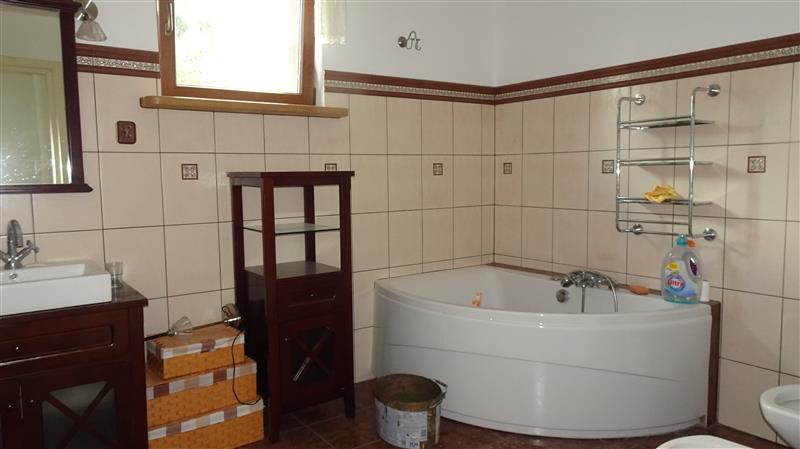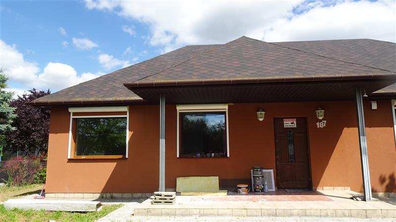 Działka 1337/12 o pow. 0,0974 ha, użytek gruntowy B - tereny mieszkaniowe. Kształt zbliżony do kwadratu, teren płaski, przy budynku nieznaczne podniesienie terenu. Nieruchomość położona w sąsiedztwie zabudowy mieszkaniowej, przy ogólnodostępnej drodze asfaltowej. Działka zabudowana budynkiem mieszkalnym, ogrodzona (siatka, sztachety, brama stalowa), teren w dużej części zielony z niedużą ilością nasadzeń ozdobnych, utwardzenie przy budynku (taras betonowy z tyłu, opaska z kostki brukowej oraz dojście od frontu). W narożu działki znajduje się piwnica betonowa obsypana ziemią. Do budynku mieszkalnego podpięte są przyłącza wodociągowe (kanalizacja sanitarna i elektroenergetyczna). Budynek mieszkalny konstrukcji lekkiej stalowej z ociepleniem wewnątrz konstrukcji, dach stalowy kryty gontem bitumicznym, elewacja - tynk dekoracyjny. Budynek jednokondygnacyjny, bez podpiwniczenia, którego budowa zakończyła się w 2007 roku. Powierzchnia zabudowy budynku mieszkalnego ujawniona w ewidencji budynków wynosi 150m[2]. Okna i parapety z tworzywa sztucznego, zamontowane rolety, drzwi wewnętrzne pilśniowe, ściany wyłożone płytami gips-karton z gładziami gipsowymi. W budynku znajdują się: salon z aneksem kuchennym, pomieszczenie gospodarcze, cztery pokoje w tym jedne wydzielony z części salonu, ganek, korytarz, łazienka, toaleta. Na podłodze płytki ceramiczne, panele, wylewka betonowa - w zależności od funkcji pomieszczenia. Na ścianach łazienki, toalety i częściach kuchennych płytki ceramiczne.
