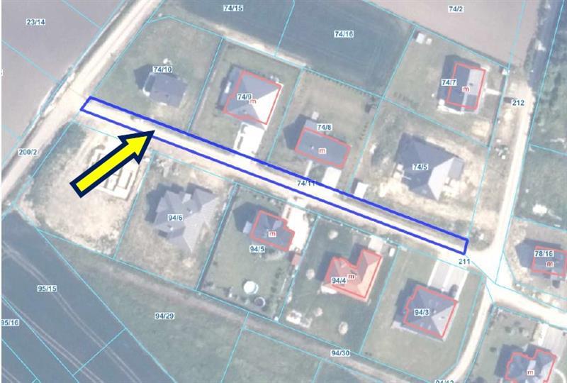 nieruchomość gruntowa położona: 82-200 Malbork, ul. Platynowa, Nowa Wieś Malborska, dz. nr 74/11, dla której Sąd Rejonowy w Malborku Wydział Ksiąg Wieczystych prowadzi księgę wieczystą o numerze GD1M/00068365/9. Działka ewidencyjna nr 74/11 posiada powierzchnię 730 m2 i kształt wydłużonego prostokąta. Działka fizycznie stanowi pas drogowy – wraz z gminną działką nr 211 tworzy ulicę Platynową, łączącą ulice Srebrną i Panoramiczną. Obie działki są częściowo utwardzone płytami jumbo, w ten sposób, że jeden ciąg płyt (jeden ślad) znajduje się na działce nr 74/11, a drugi na działce nr 211. Działka nr 74/11 posiada kształt prostokąta i jest lekko nachylona, ze spadkiem w kierunku zachodnim i w całości stanowi ją użytek RIIIb – grunty orne. Według studium uwarunkowań i kierunków zagospodarowania przestrzennego działka znajduje się na terenach zabudowy mieszkaniowej, zagrodowej i usługowej. W działce przebiegają następujące sieci: energetyczna, wodociągowa oraz gazowa. Przy granicy działki przebiega napowietrzna linia energetyczna. Nieruchomość posiada dostęp do drogi publicznej poprzez działkę nr 212, stanowiącą własność gminy – ulicę Srebrną oraz poprzez działkę nr 200/2 stanowiącej własność gminy – ulicę Panoramiczną. Nieruchomość jest obciążona trzema służebnościami gruntowymi, na rzecz działek budowlanych nr 74/8, 74/9 i 74/10.