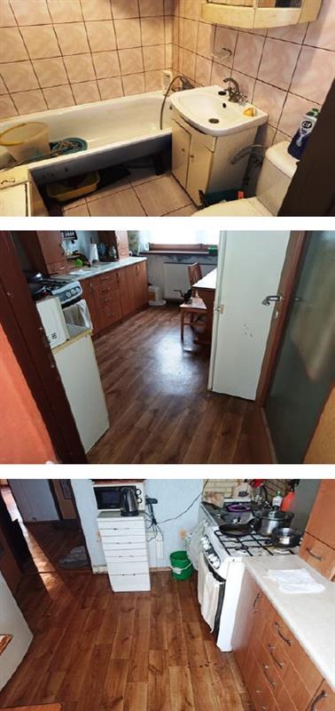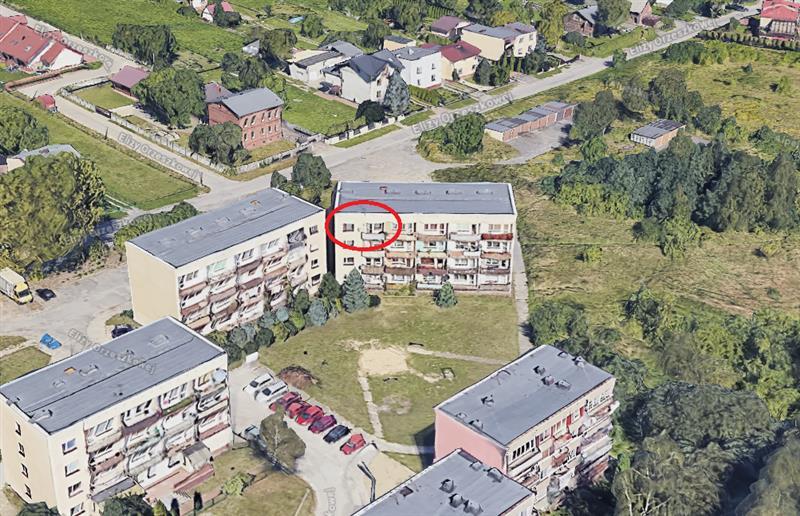 Lokal mieszkalny znajduje się w budynku mieszkalnym wielorodzinnym na ostatnim - 3 - piętrze. Składa się z 2 pokoi, kuchni, łazienki z wc i przedpokoju. Powierzchnia użytkowa lokalu wynosi 56,10 m2. Do lokalu przynależy piwnica o powierzchni 4,20 m2. Mieszkalnie posiada balkon od strony południowej. Lokal posiada ogrzewanie centralne, zaopatrywany jest w ciepłą wodę z kotłowni głównej i w gaz do kuchenki w kuchni. Ogólny stan mieszkania oceniony został na bardzo zły.