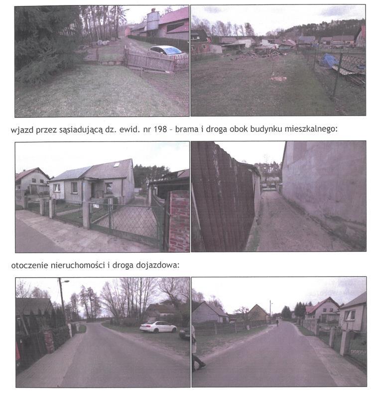 Uwaga: nieruchomość zagospodarowana jest z przekroczeniem granic działki nr 229. Sąsiadująca działka nr 198 stanowi własność gminy Nowe Miasto nad Wartą i w zasadniczym obszarze jest drogą publiczną obejmującą prawie całą strukturę komunikacyjną miejscowości Wolica Kozia, a na odcinku przyległym do licytowanej nieruchomości od strony północnej pełni również funkcję kanału burzowego. Działka ta jest częściowo ogrodzona wspólnie z nieruchomością licytowaną, a wjazd na jej teren zabezpiecza brama. Dzięki włączeniu części obszaru działki gminnej w strukturę licytowanej nieruchomości zapewniono dojazd w głąb działki nr 229. W innym przypadku dostęp na ten teren mógłby się odbywać wyłącznie przez budynek mieszkalny, ponieważ zajmuje on w zasadzie całą szerokość frontowej części nieruchomości.