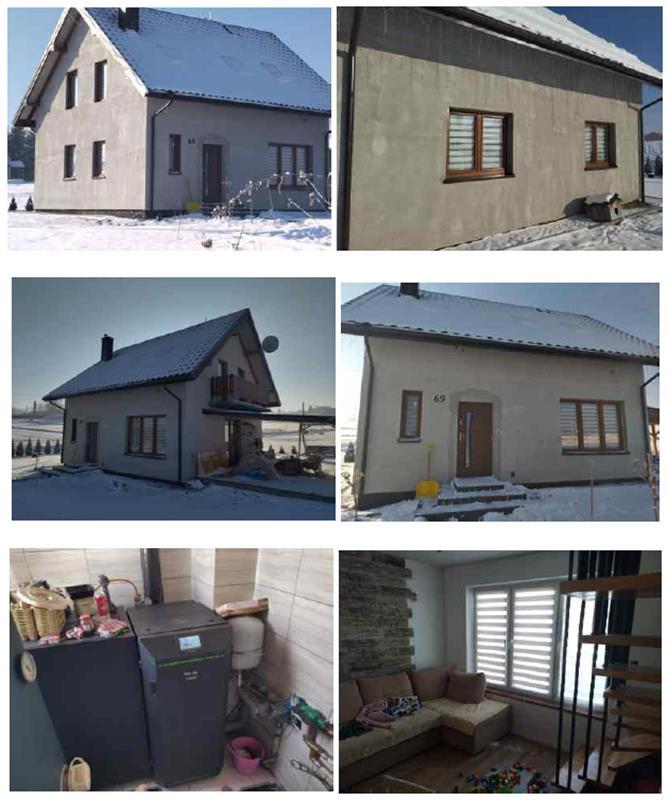 Konstrukcja murowana o stropach żelbetowych w układzie mieszanym. Fundamenty: ławy fundamentowe żelbetowe z betonu żwirowego B 20,ściany fundamentowe wylewane na mokro z betonu B20. Ściany zewnętrzne z bloków wapienno-piaskowych SILKA, gr 24 cm, styropian TERMOORGANICA 20 cm (albo 15 cm - oświadczenie dłużnika). Ściany wewnętrzne z bloków wapienno-piaskowych SILKA, cegły kratówki i płyt G-K na stelarzu. Wykończenie pomieszczeń w standardzie typowym i do odświerzenia. Podłogi wyłożone panelem drewnianym lub płytkami ceramicznymi. Ściany malowane lub z okładziną ozdobną, Łazienki flizowane z białym montażem. Schody na piętro metalowe ze stopniami drewnianymi. Okna PCV, kominek w salonie. Do wykończenia elewacja, podbitka dachu, opaska do okoła domu, płyta balkonu. Działka w większości położona w terenie 2.MN- tereny zabudowy mieszkaniowej jednorodzinnej i częściowo 1.U1-terny usług. Decyzja pozwolenie na budowę z 20-09-2019 roku BGN 6740.SK.1148.2019. Brak pozwolenia na użytkowanie domu - według oświadczenia właściciela. Zgodnie z informacją udzieloną przez Powiatowy Inspektorat Nadzoru Budowlanego w Wieliczce nie odnaleziono zawiadomienia o zakończeniu budowy ww. budynku, a co za tym idzie budynek ten nie został odebrany.