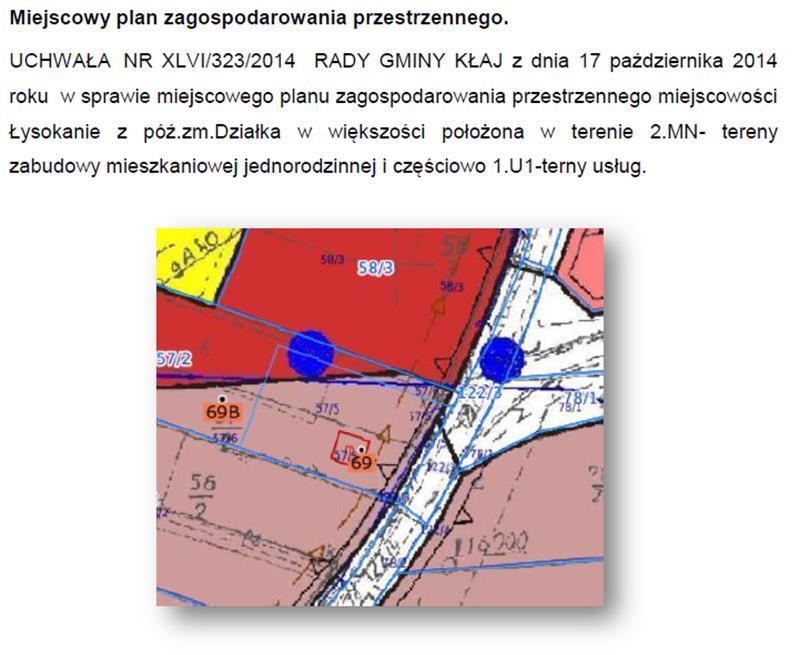 opisanej jako należące do dłużnika: Artur Chmielek prawo własności nieruchomości położonej w miejscowości: Łysokanie, dla której to nieruchomości Sąd Rejonowy w Wieliczce Zamiejscowy VII Wydział Ksiąg Wieczystych z siedzibą w Niepołomicach prowadzi księgę wieczystą o nr KR2I/00037562/0 stanowiącej działkę ewid. nr 57/5 o powierzchni 1641 m2 położona w miejscowości Łysokanie, Gmina Kłaj. Działka w kształcie zbliżonym do prostokąta o wymiarach około 31 x 51 m.b. z dostępem z drogi będącej we władaniu GDDKiA.